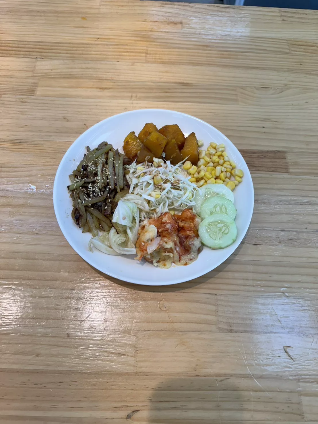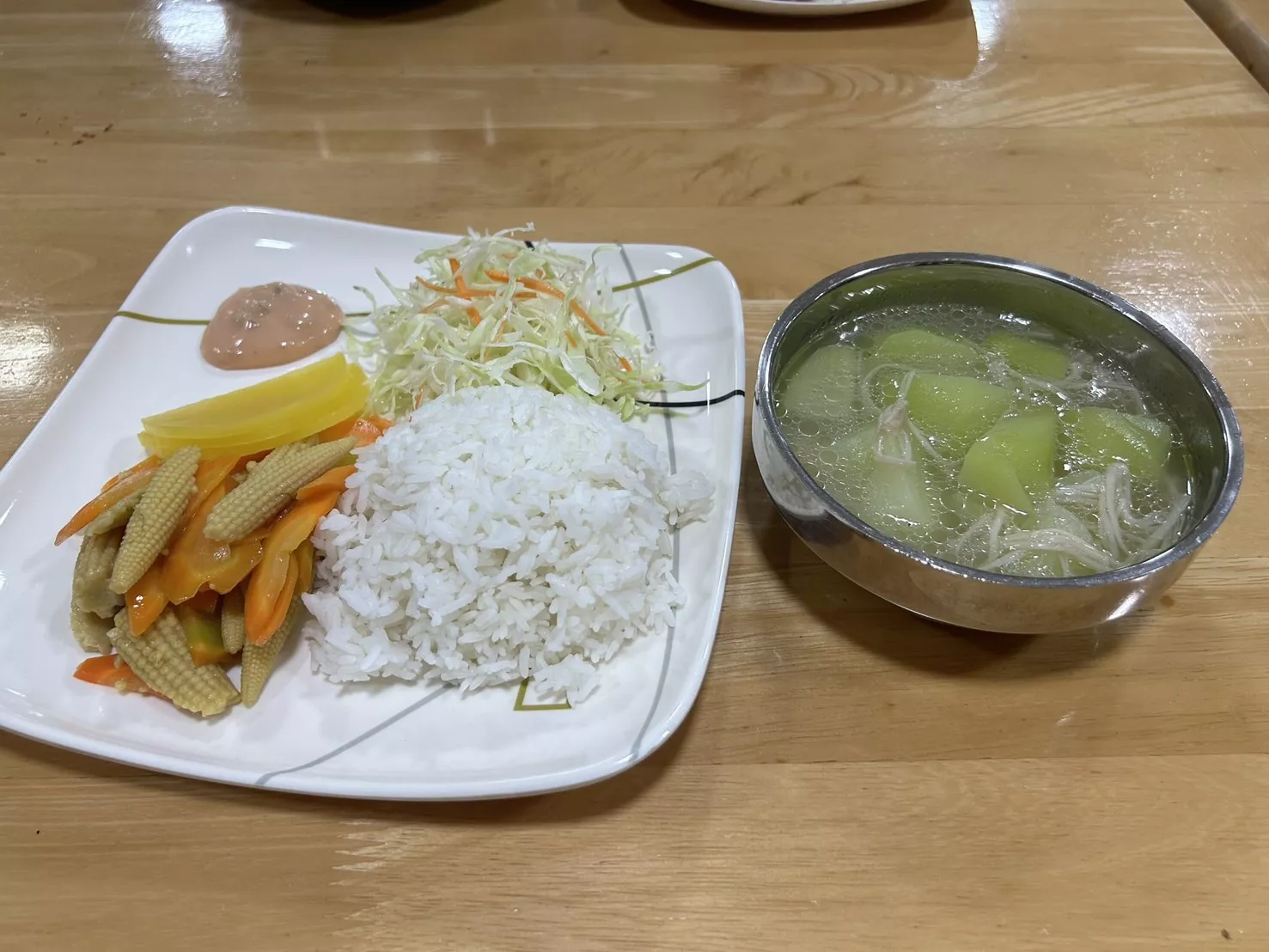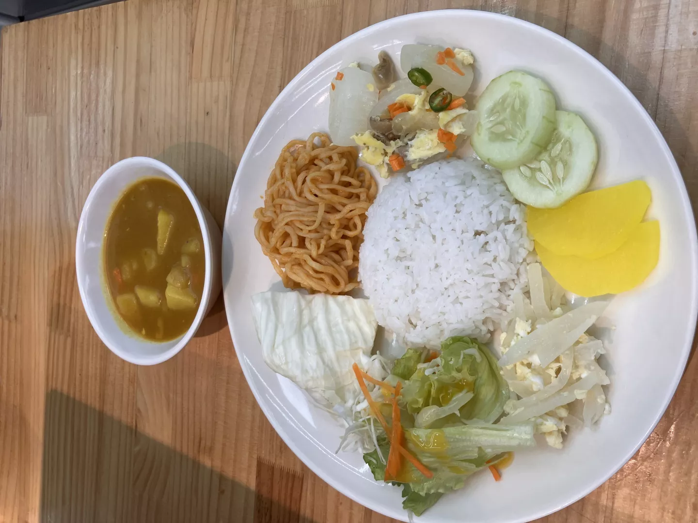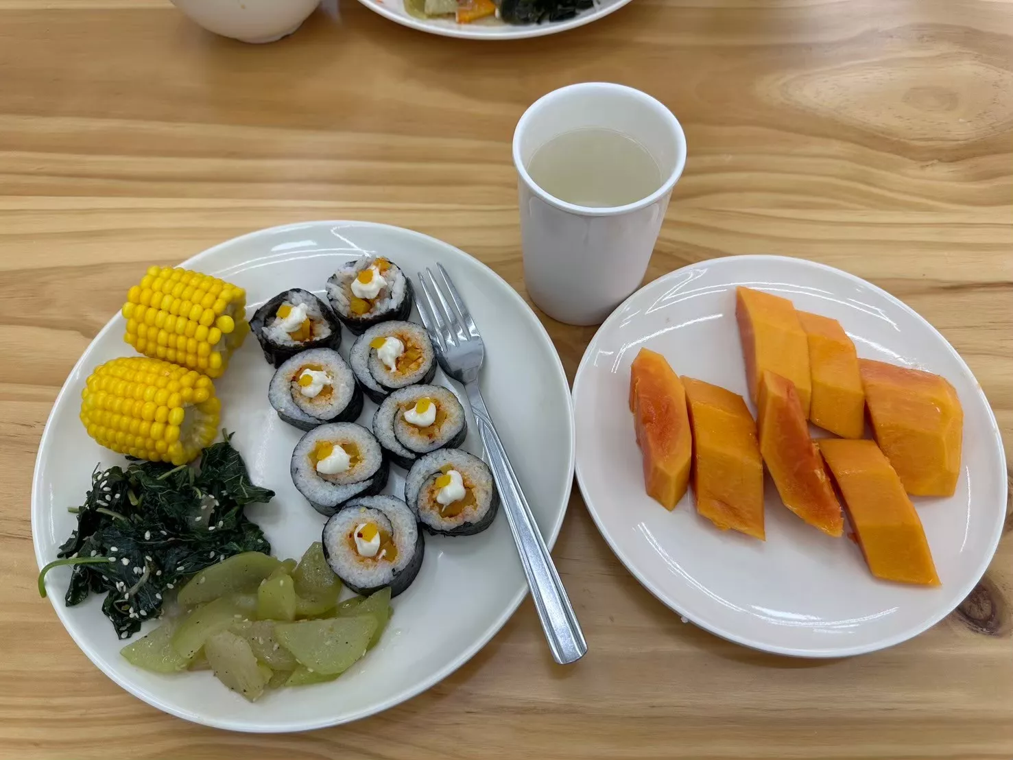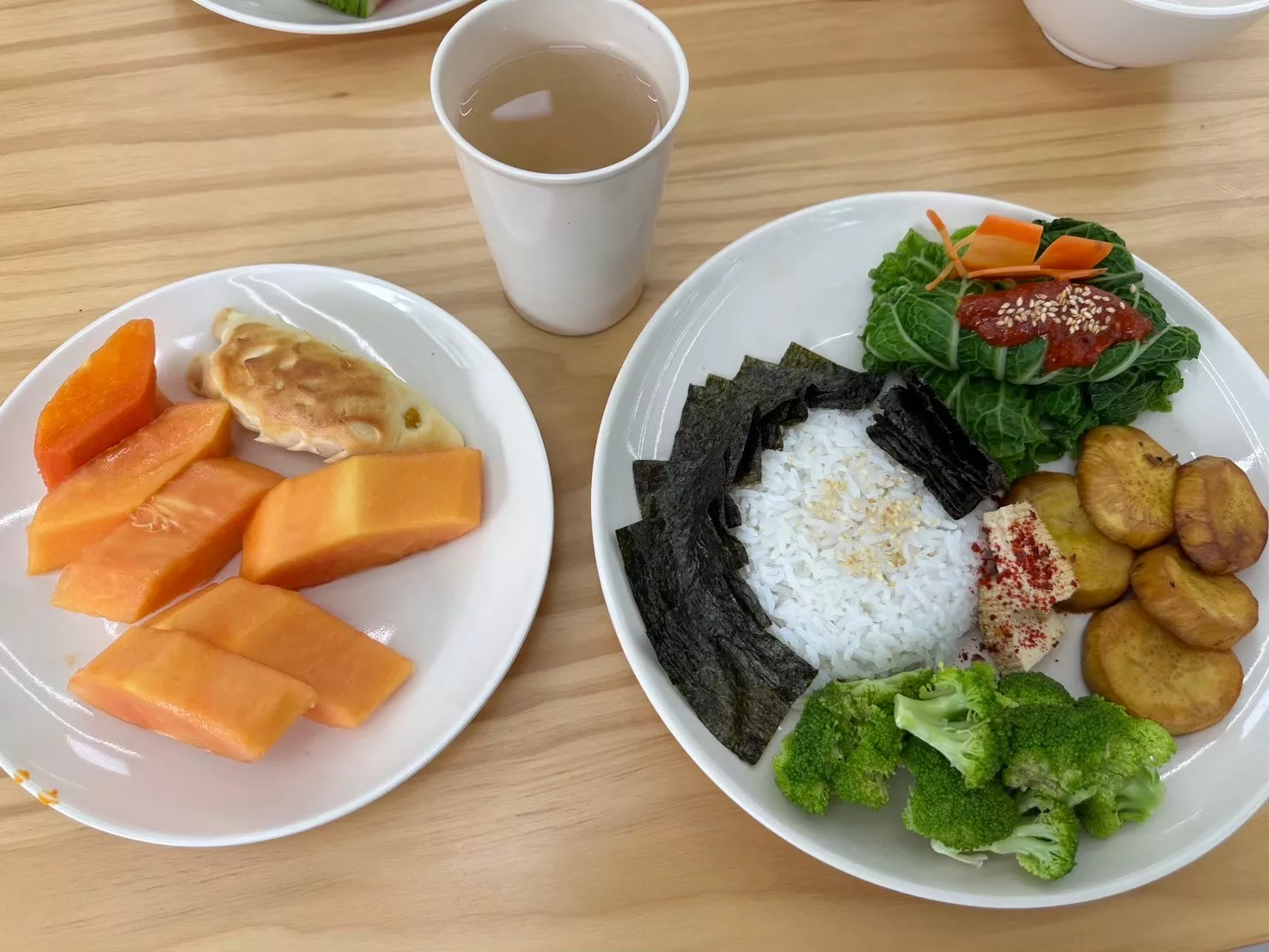 每一餐都經過設計,從清爽的沙拉、玉米、米飯、麵食與時蔬,再搭配飯後水果,讓每個素食者都能吃得開心、吃得健康。