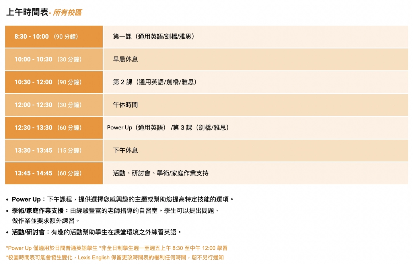 - 英語工作坊除了課程之外,還可以參加英語工作坊和家庭作業支持。