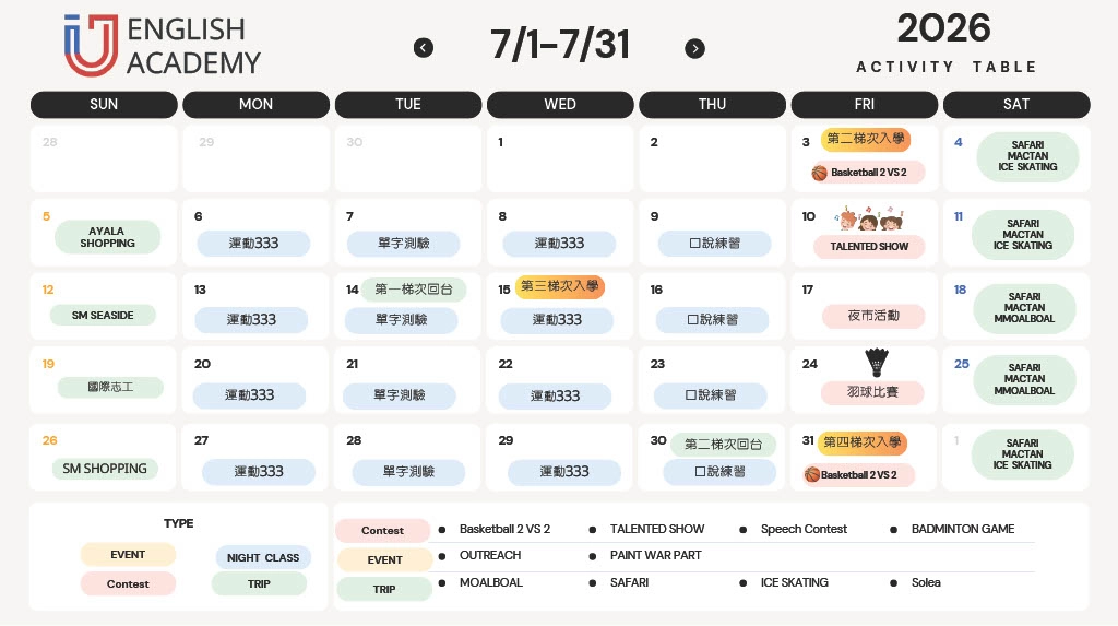 第三梯次 7/15(三)-8/25(二) - 招收年齡8歲~高中生