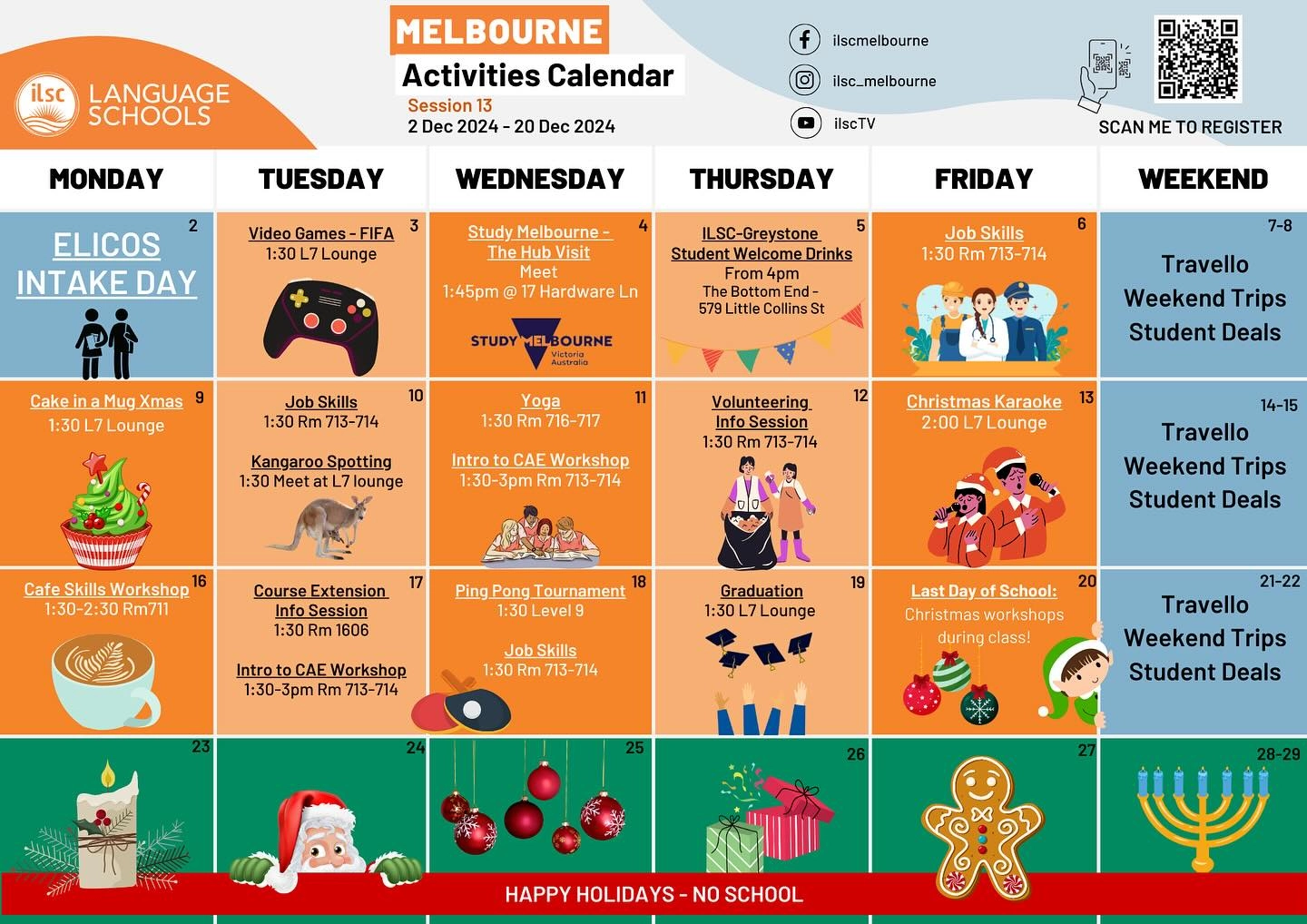ILSC在加拿大、澳洲和印度擁有分校,累積了超過20年的教學經驗。在澳洲設有五個校區,分別位於雪梨、布里斯本、墨爾本、阿德萊德和伯斯,學生可以根據自己的喜好選擇不同的城市來學習,體驗各具特色的城市生活。ILSC墨爾本校區於2016年成立,位於Southern Cross Station對面,成為進入市中心及周邊地區的重要交通樞紐。這裡交通極為便利,周圍有各式餐廳、購物中心和特色咖啡廳,學生們在課後能輕鬆體驗墨爾本的便利與藝術氛圍。校園設計現代、開放明亮,為學生提供舒適的學習環境,並且有多元化的課後活動可供選擇。