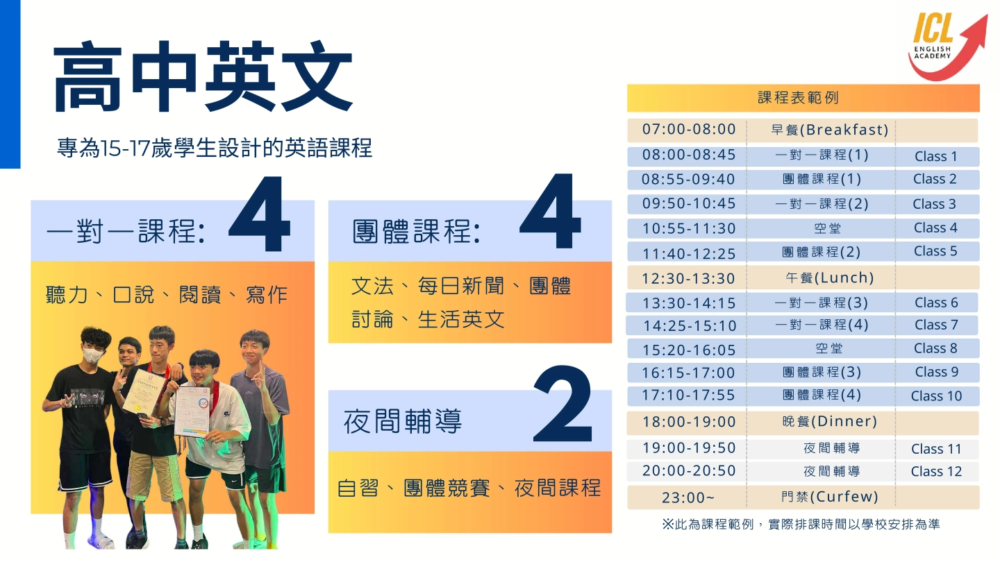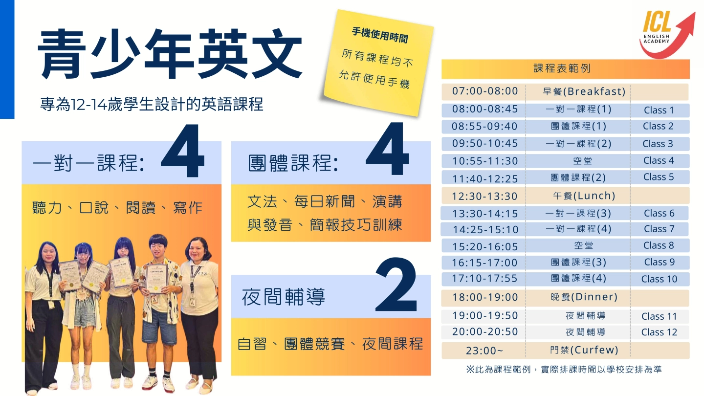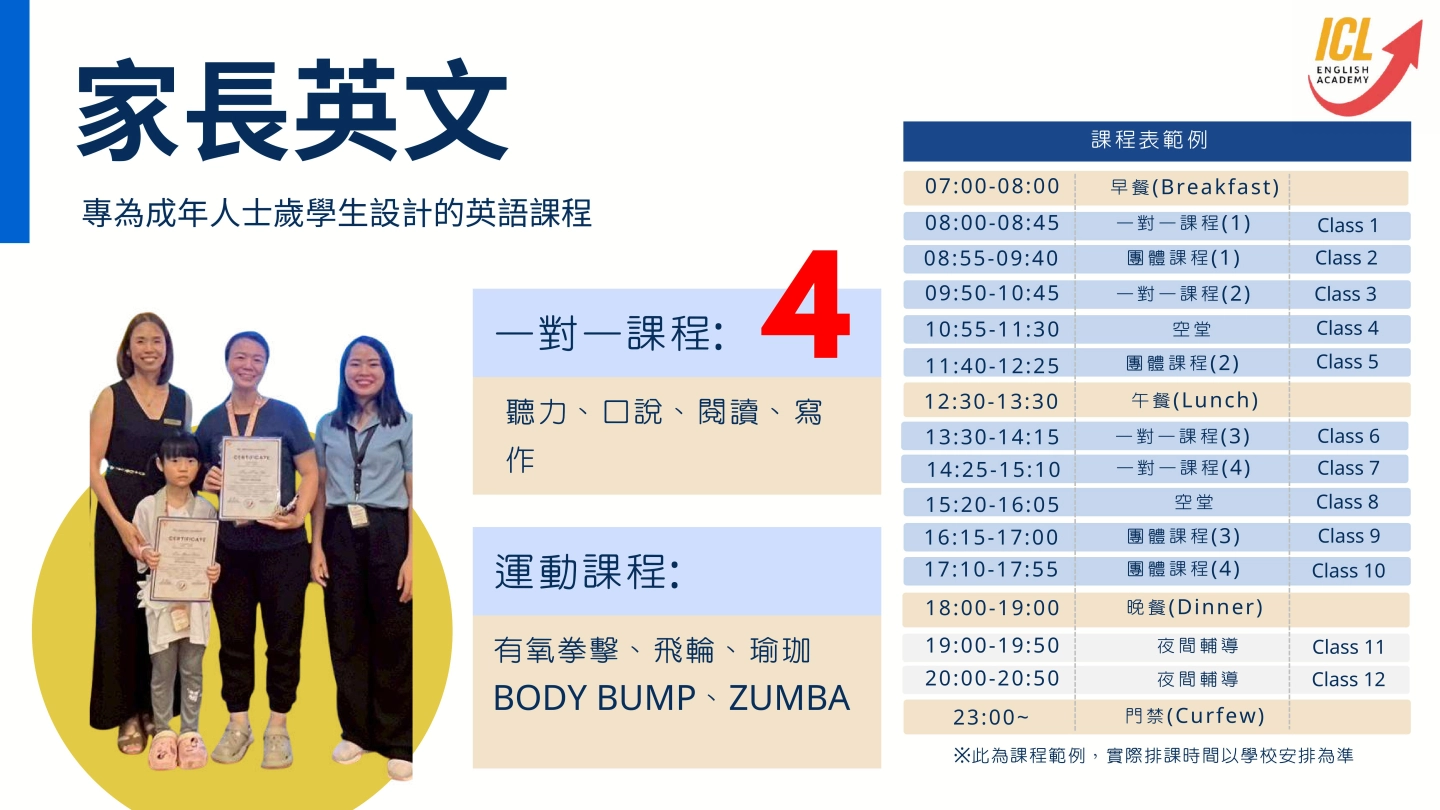 - 卓越的師資ICL致力於啟發學生的學術興趣,讓學習過程更具深度和實用性;ICL擁有豐富的學科知識和教學經驗,具備卓越的溝通和教學技能。