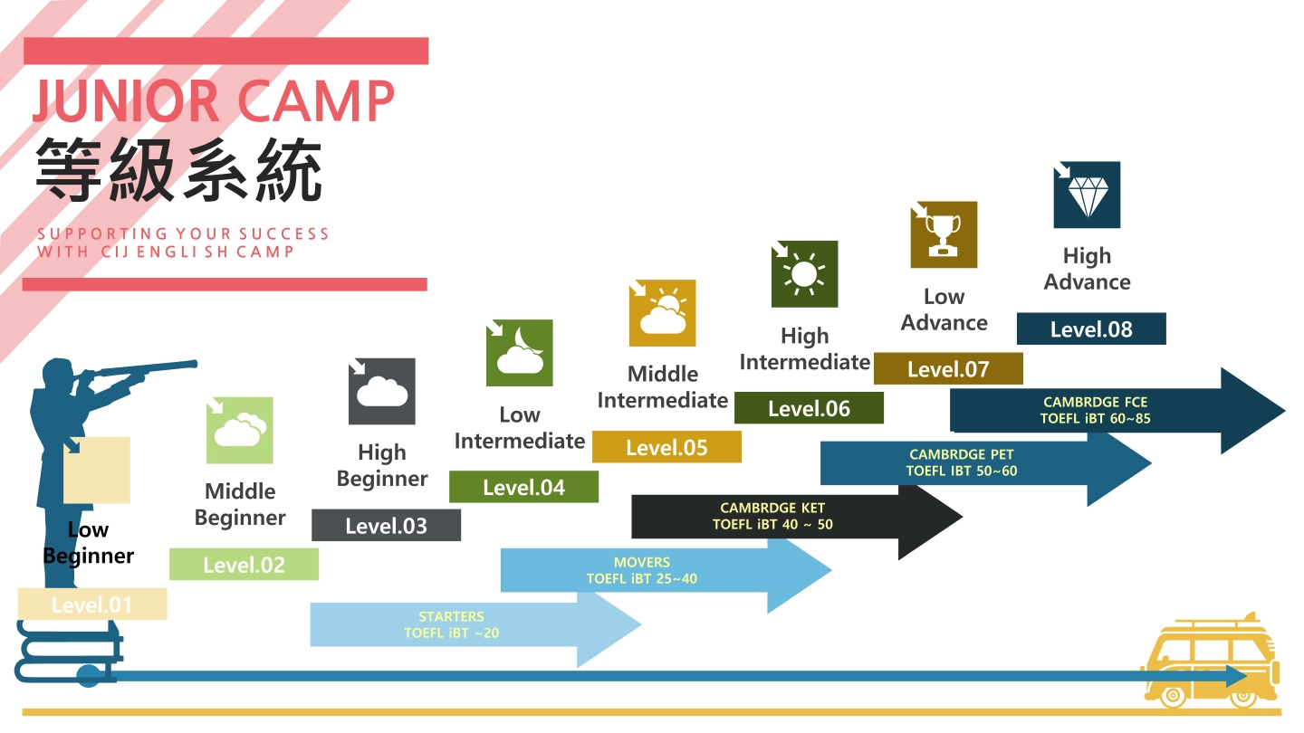 - 學習管理透過每週的能力測驗和老師的仔細分析,CIJ針對學生英語能力的弱點加以補強,以確保學習者能最大程度地進步。