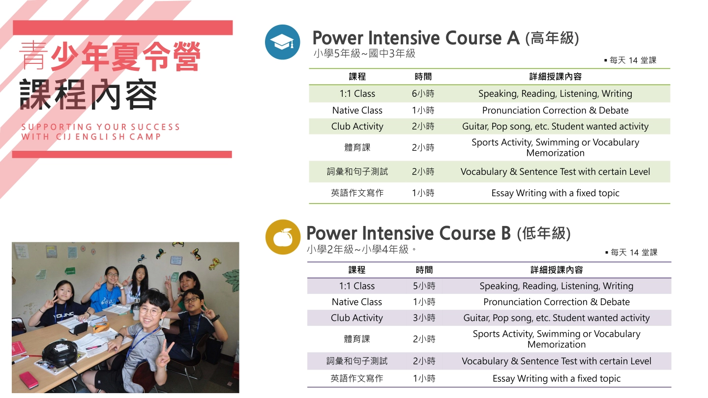 CIJ於2003年開辦英語夏令營,照顧青少年甚至幼童的經驗豐富,也相當了解家長與監護人的想法,因而能順暢地溝通,提供學生最佳的營隊體驗!