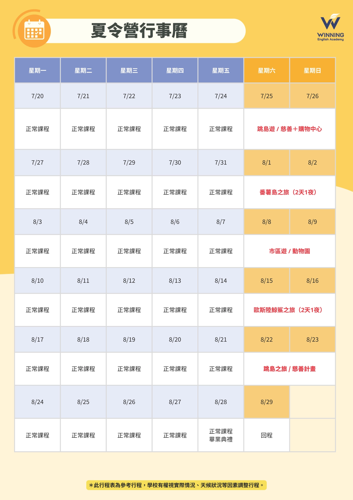 - ***此為參考課表,實際課表以到校為主***